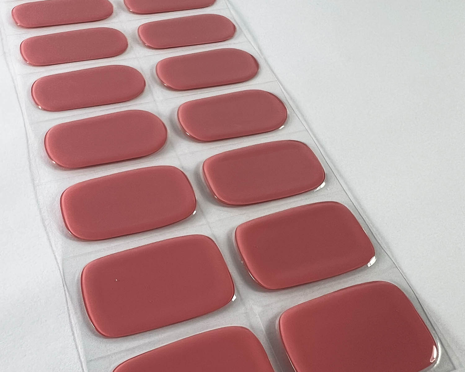 Here are the sizes for our Semi-cured nail strips. You can also stretch or trim them to suit your nails.