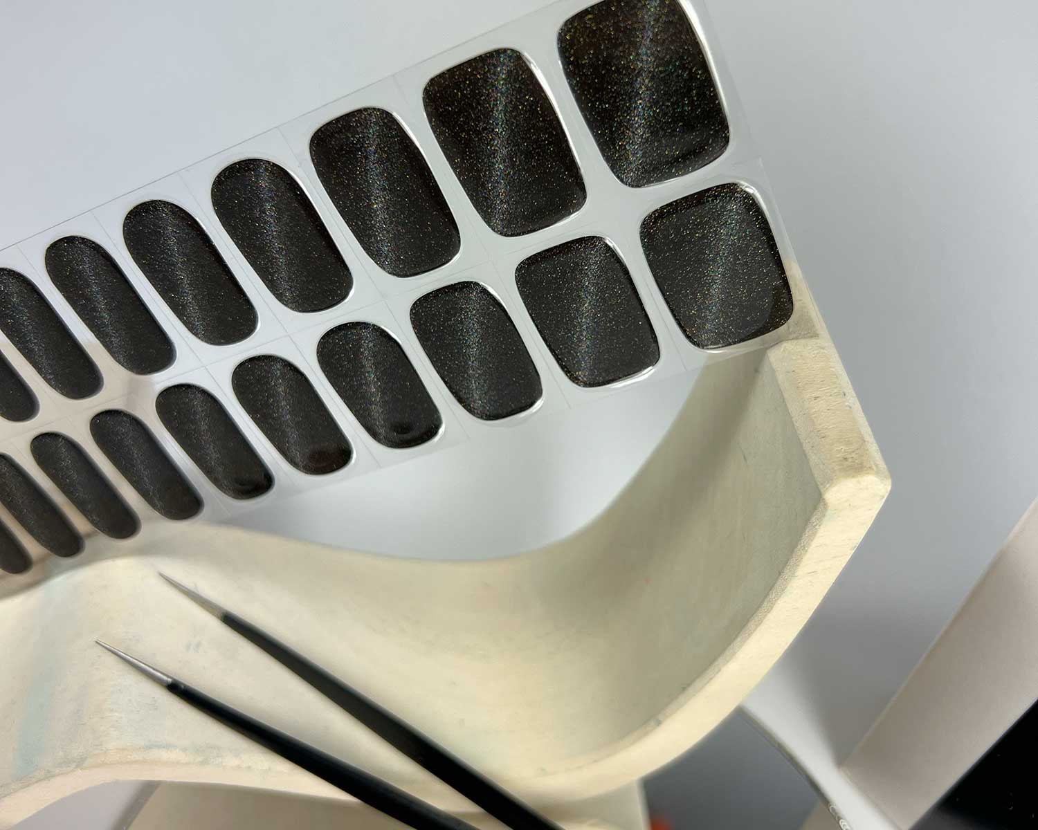 - Peel the nail strip from the backing paper, pulling gently to avoid damaging the stickers