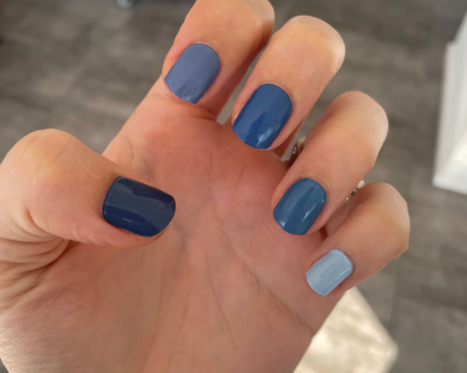 I have to give a round of applause for whoever made sure the shades of blue started dark to light for one hand and opposite for the other. I love having all different shades and them not matching on both hands 🙂 love it!