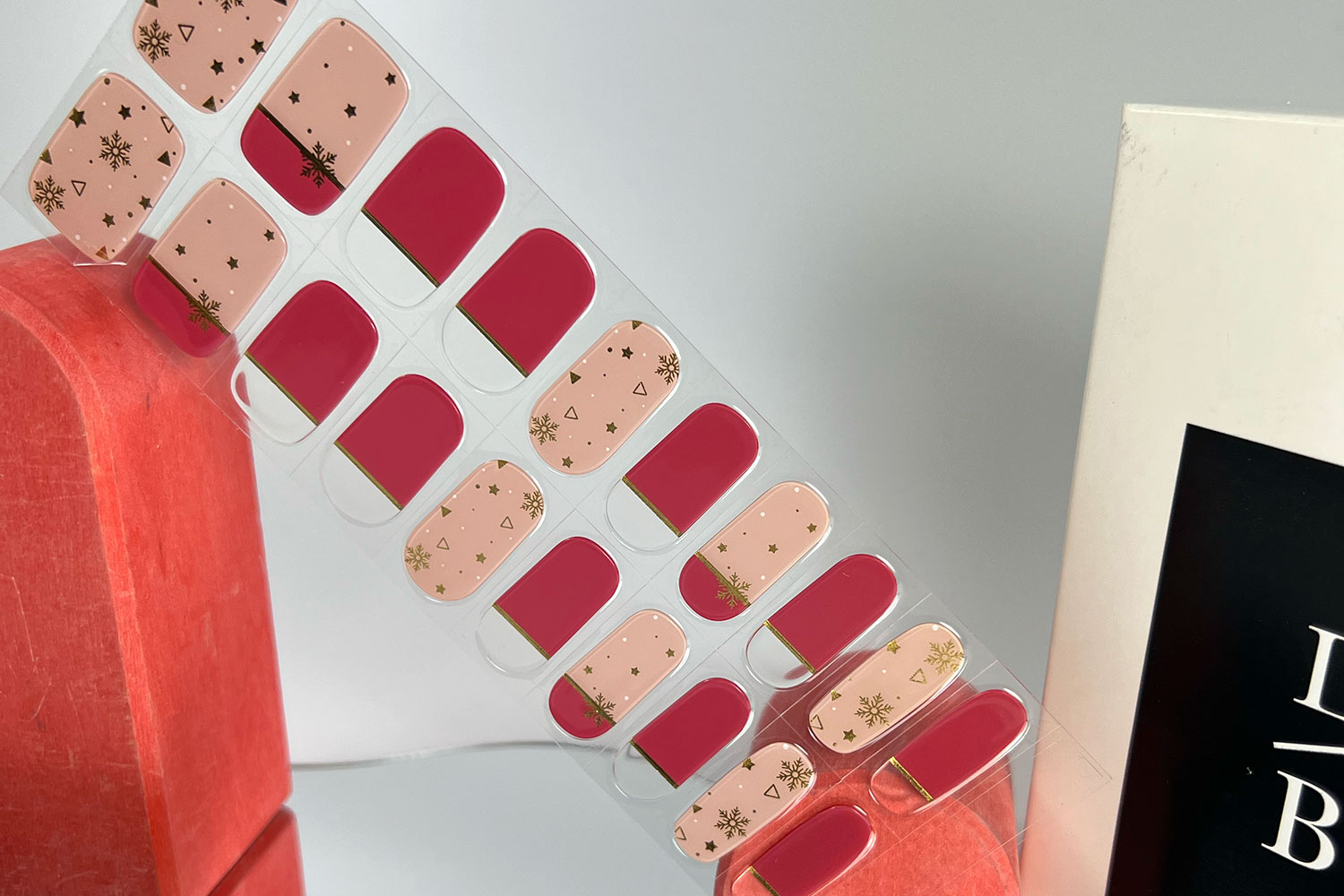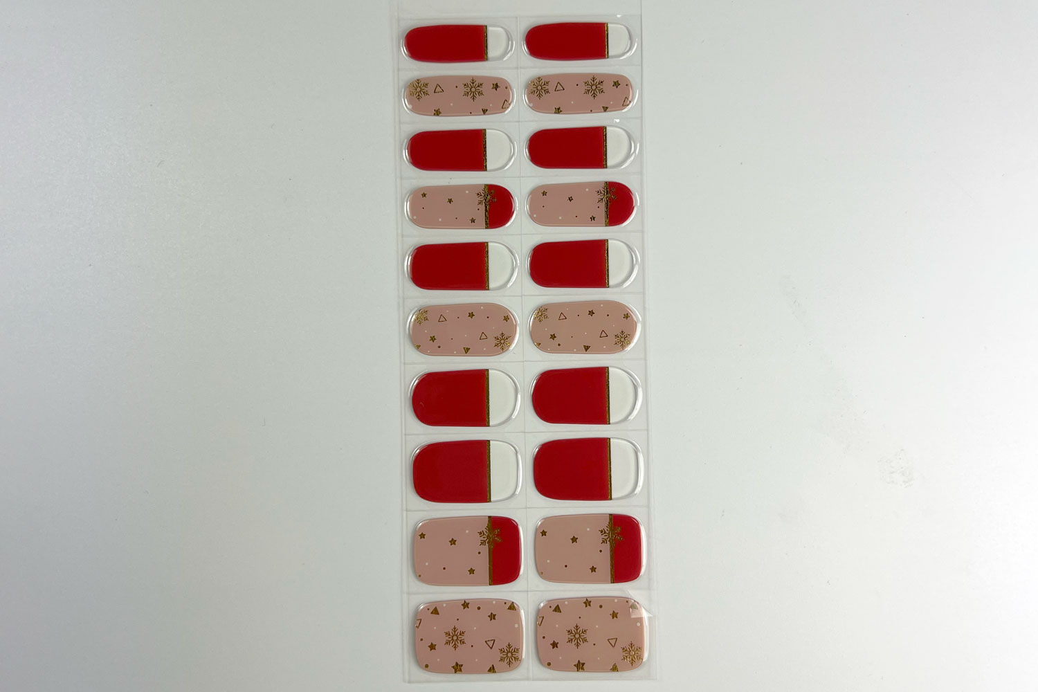 A merry mix of deep red, blush pink, and gold snowflake accents — Christmas Cheer brings festive sparkle and cosy warmth to your manicure.
