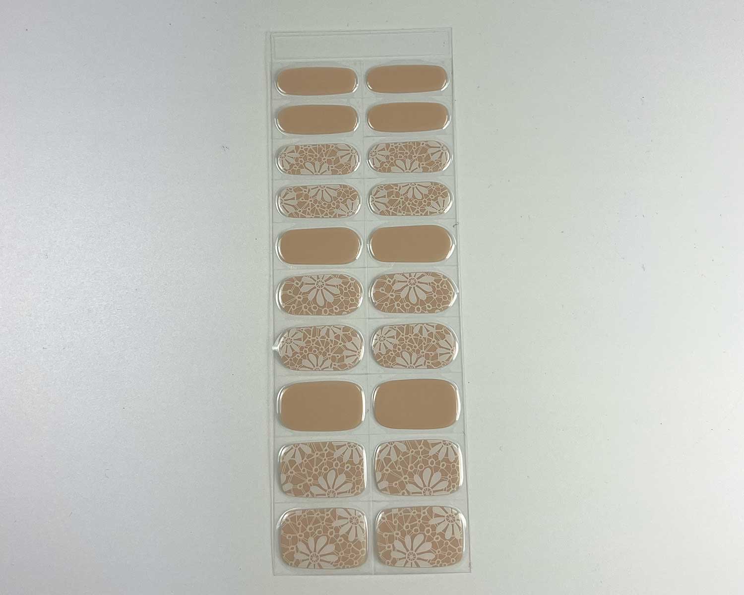 - Peel the nail strip from the backing paper, pulling gently to avoid damaging the stickers