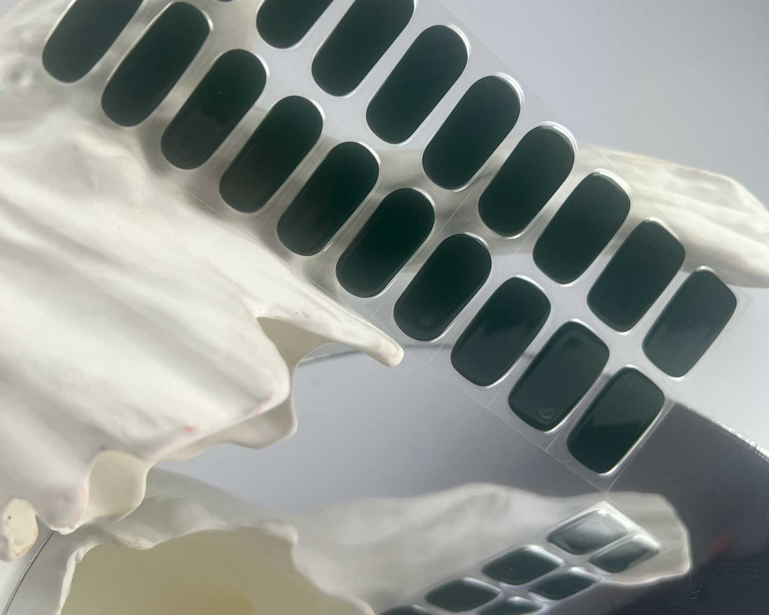 - Place the nail strip on your nail, gently stretching it for a perfect fit.