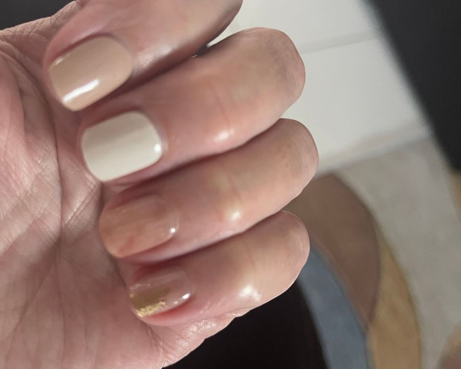 The gold flecks varies and was not suitable for short nails. Lost a lot of the true effects of these nails with the trimming to fit my nails. Also wasn’t keen on the plain colours used in the mix.