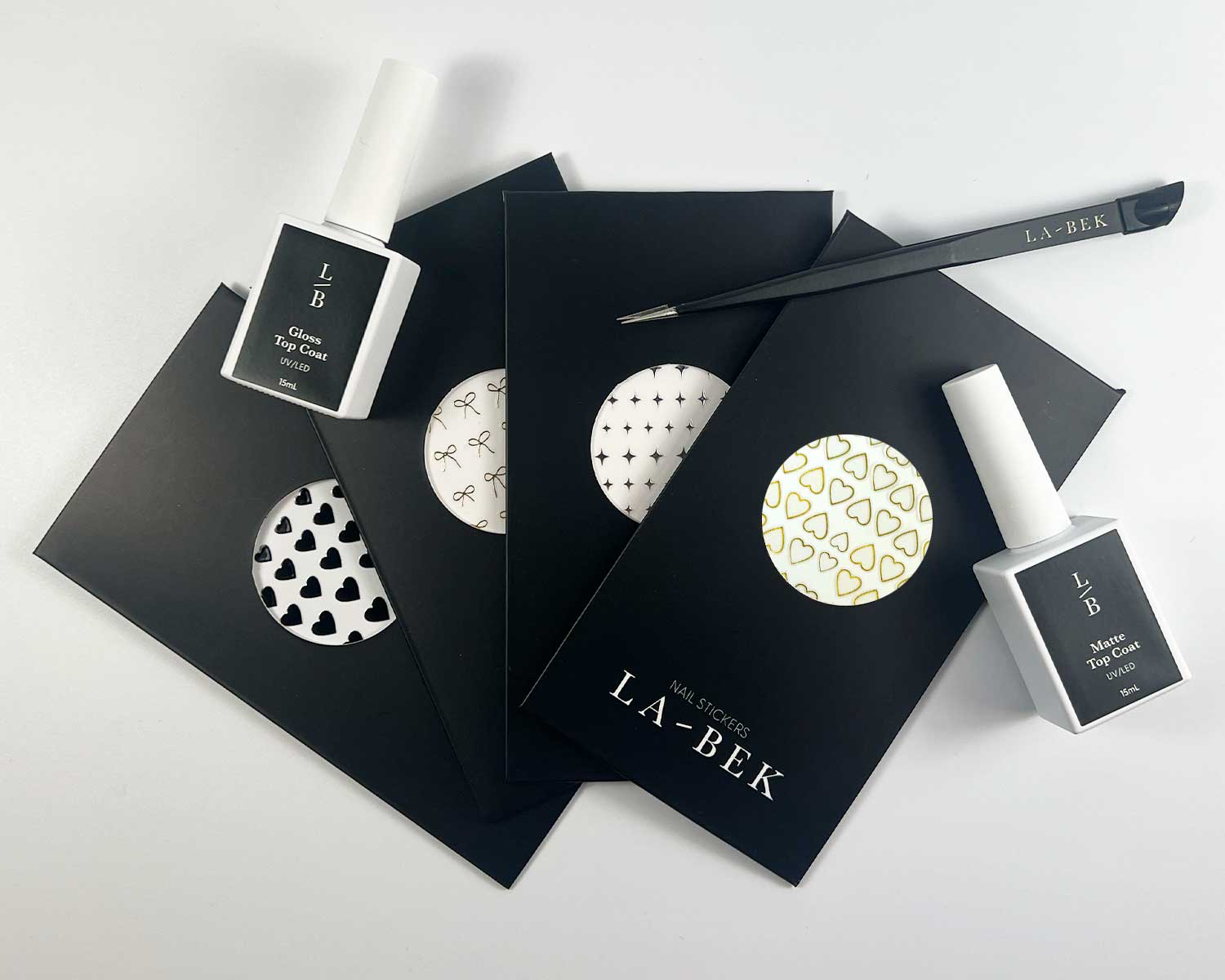 Each set of gel nail wraps from LA-BEK comes with: