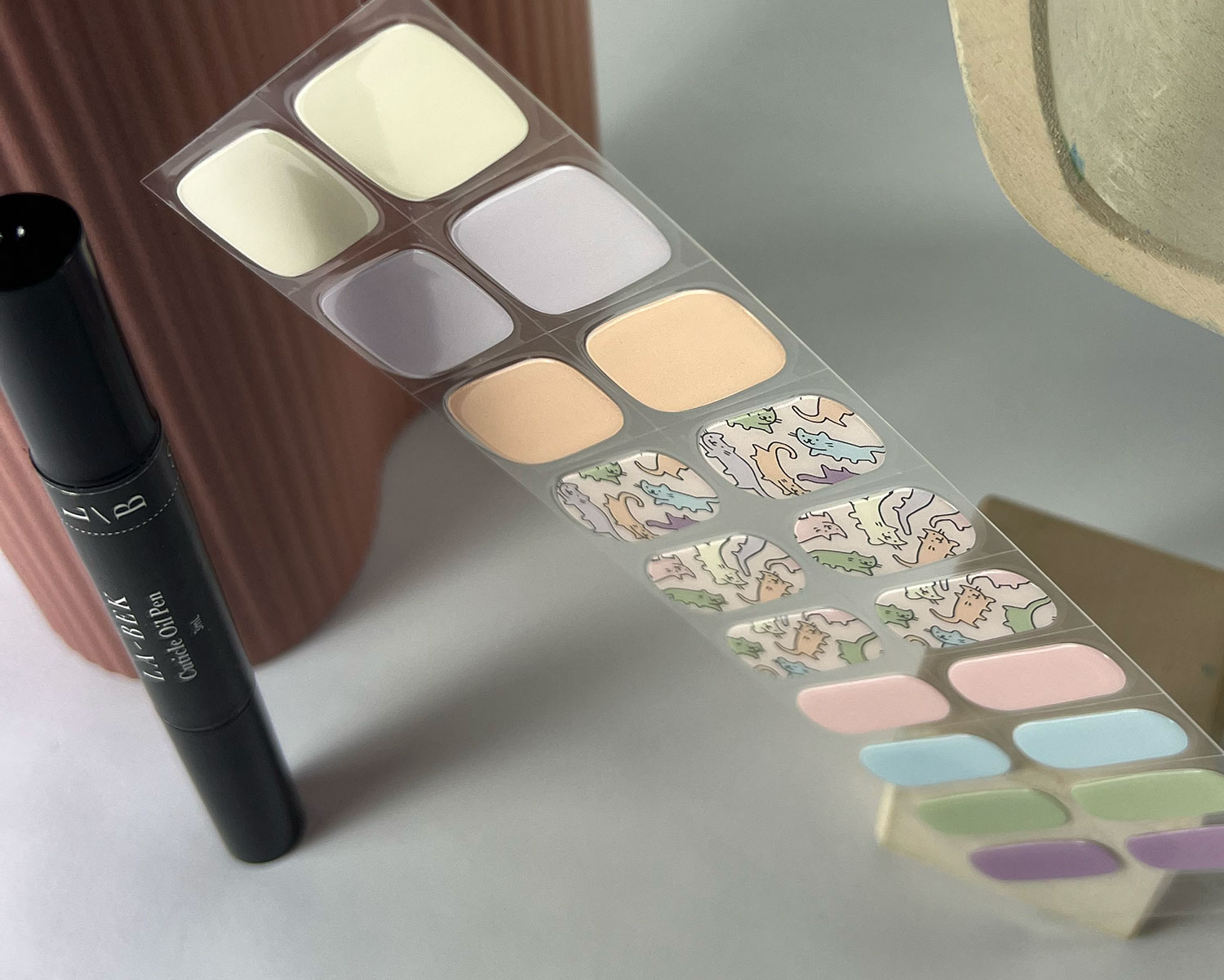- Peel the nail strip from the backing paper, pulling gently to avoid damaging the stickers