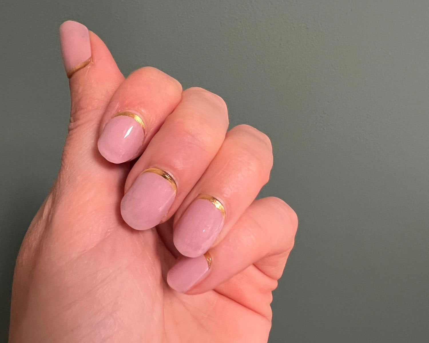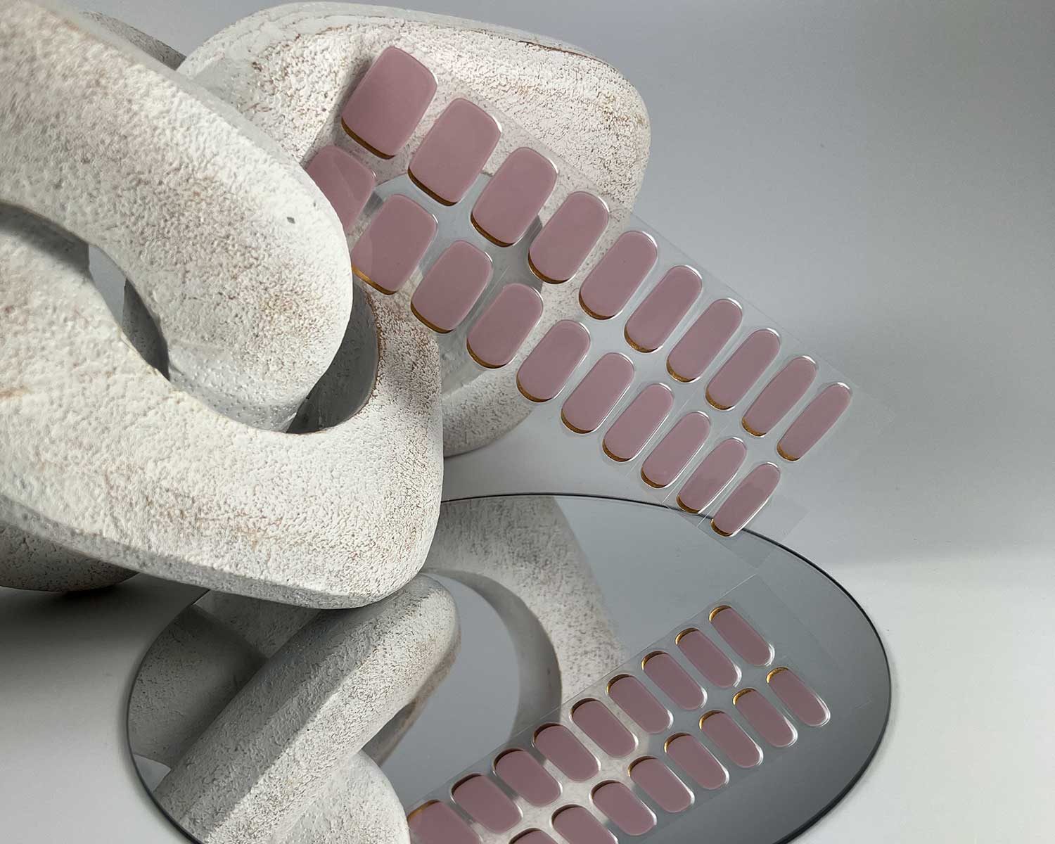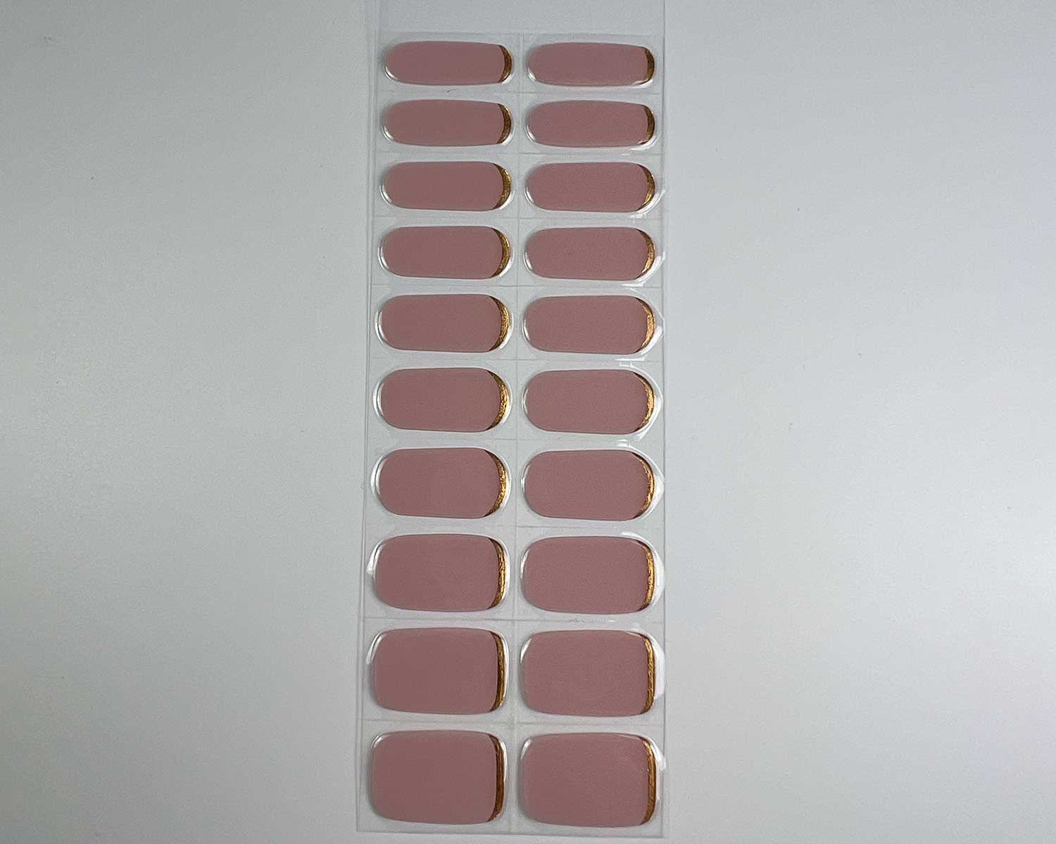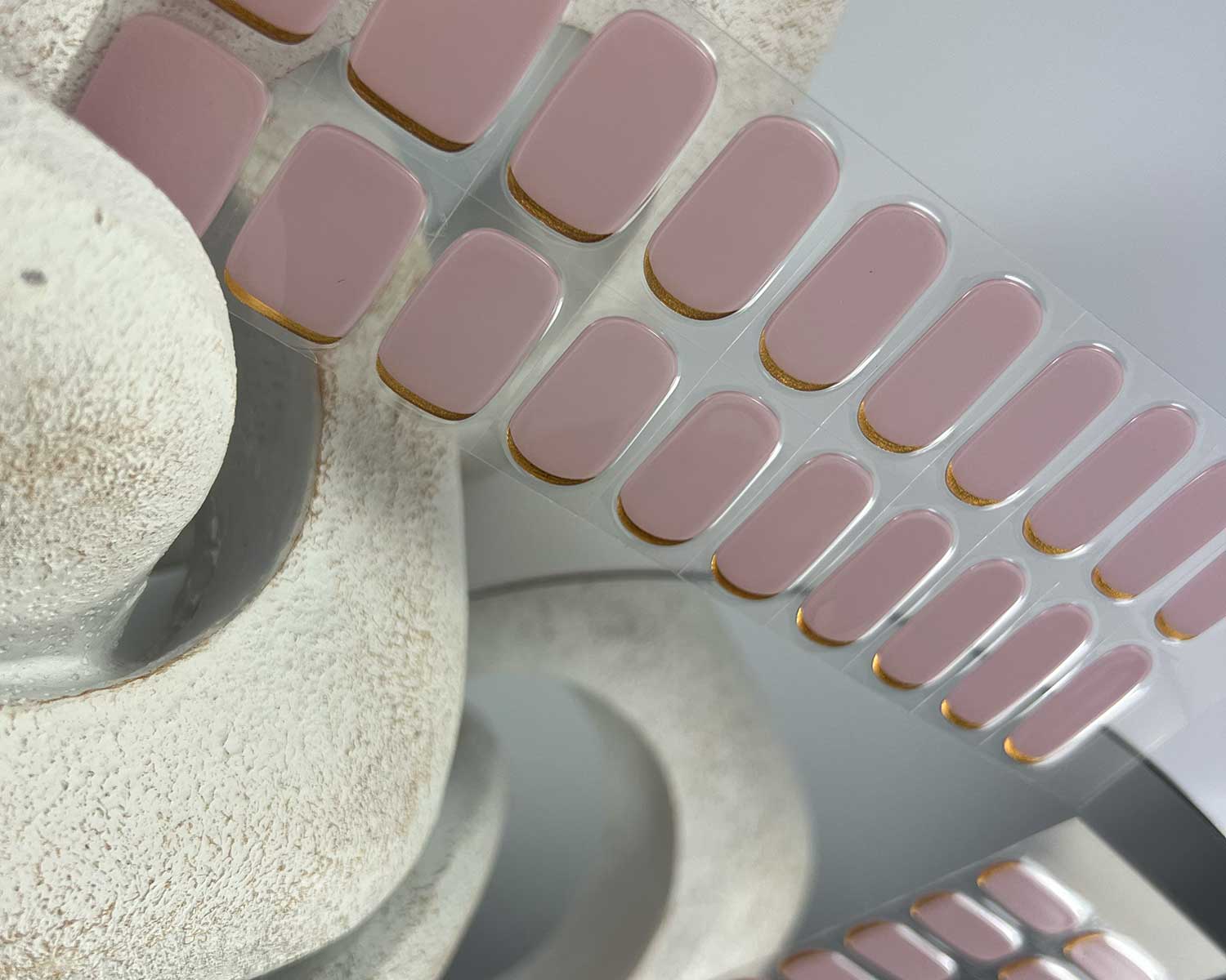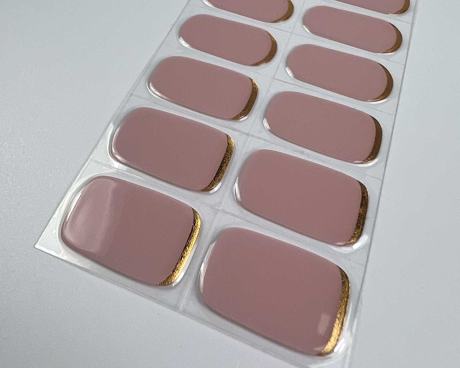 A soft mauve nail wrap with a golden metallic base for a chic, elevated finish. Elegant, understated, and so easy to wear.
