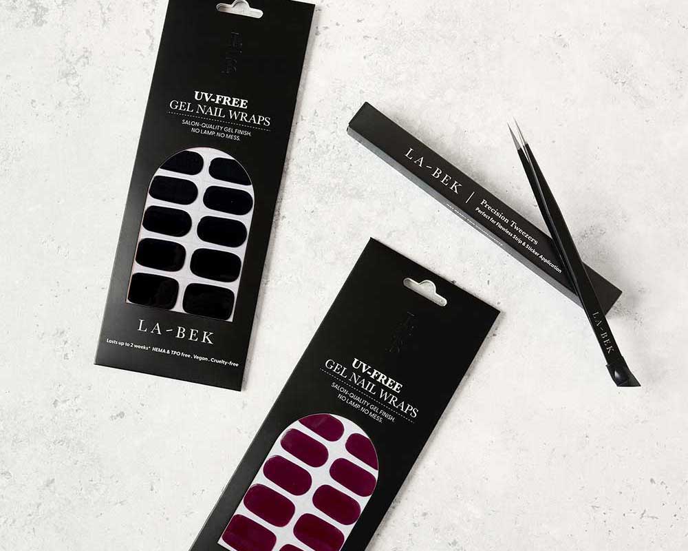 This starter set includes Ebony and Merlot nail sets, plus Precision Nail Tweezers — everything you need to try La-Bek for the first time with zero guesswork.