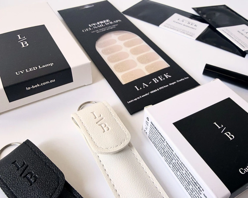 - Apply your La-Bek nail strips as usual and cure fully under your UV/LED lamp (see above).