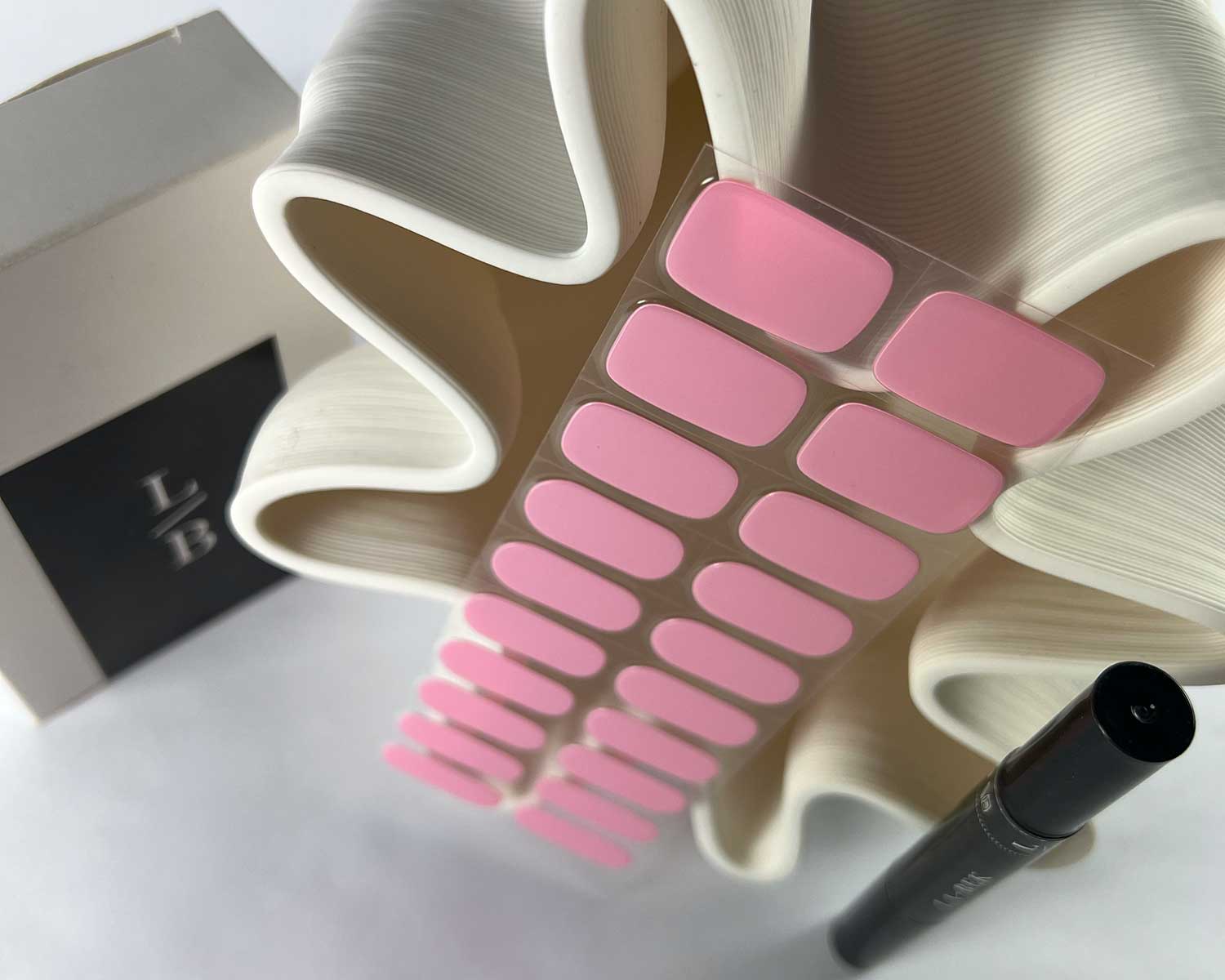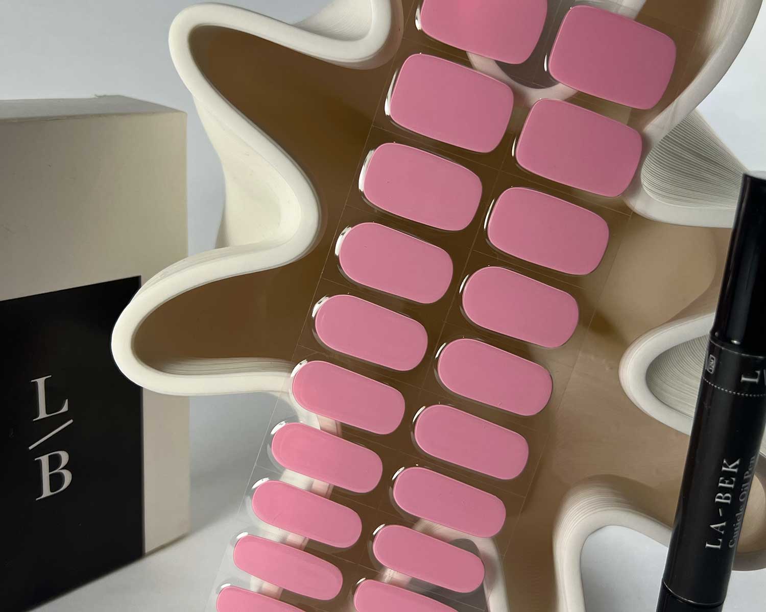 - Apply your La-Bek nail strips as usual and cure fully under your UV/LED lamp (see above).