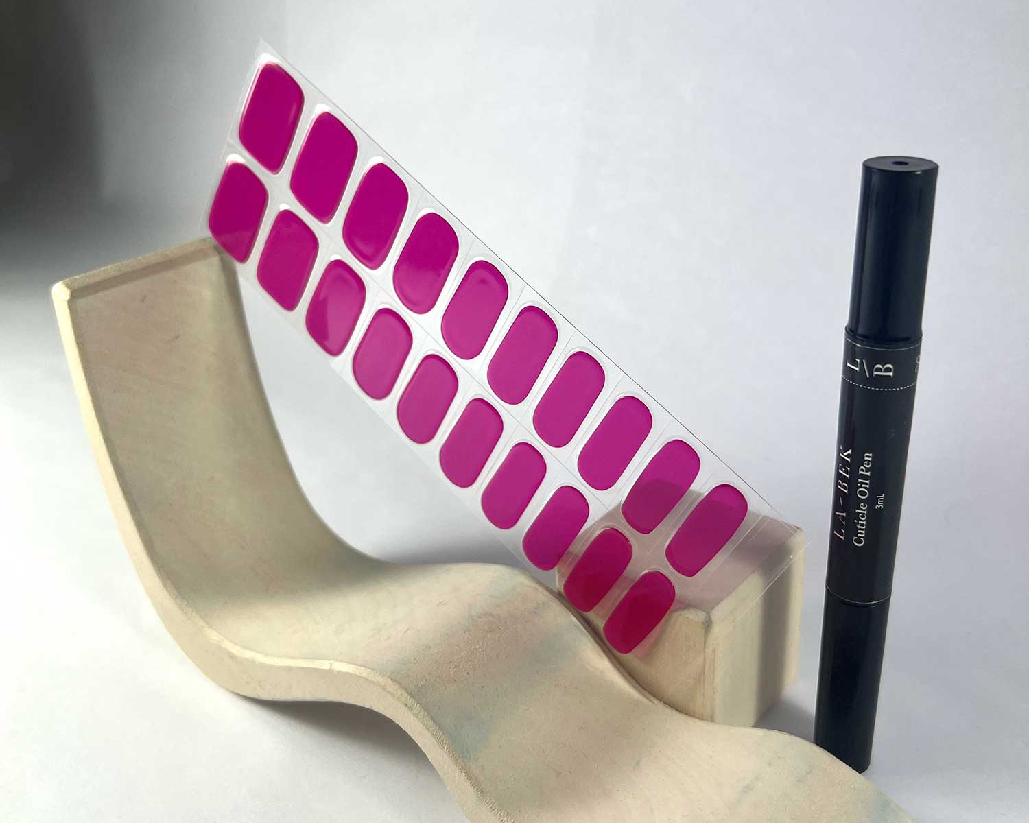 - Apply your La-Bek nail strips as usual and cure fully under your UV/LED lamp (see above).