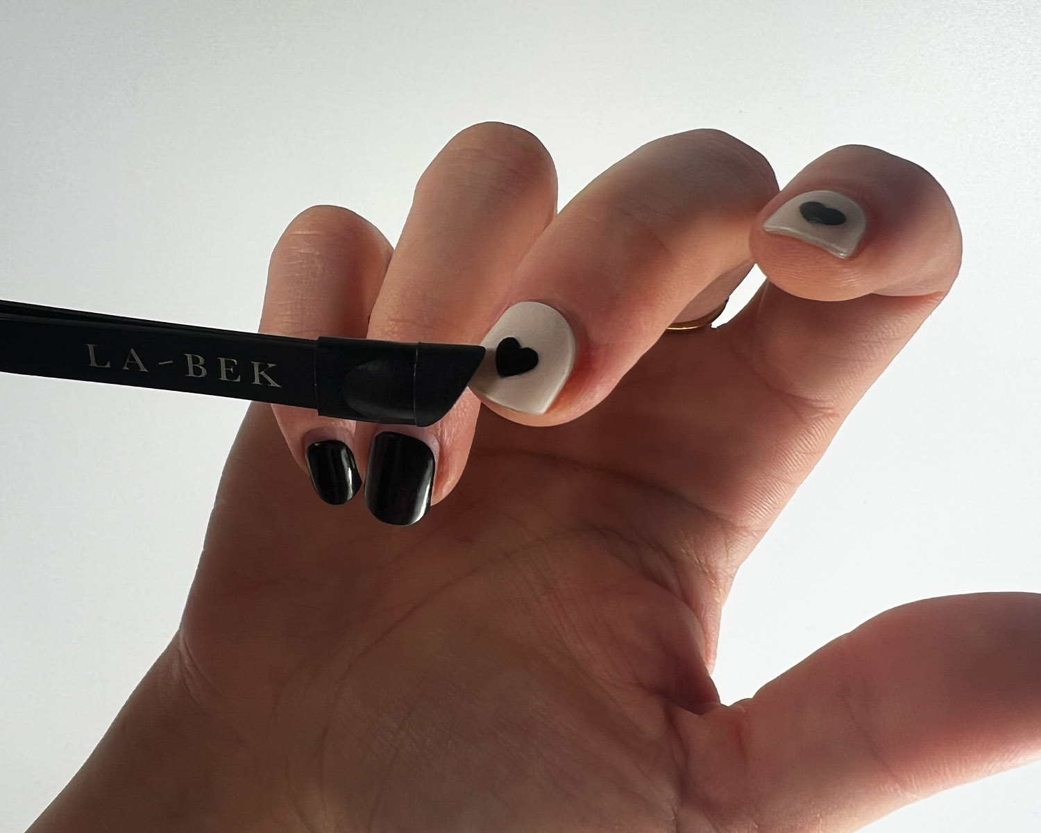 Use the fine-tip tweezers to gently place stickers exactly where you want them. Then flip to the soft silicone wedge tip to press and seal your stickers smoothly — no lifting, no bubbles. It’s also ideal for sealing down the edges of your La-Bek strips for a flawless, long-lasting finish.