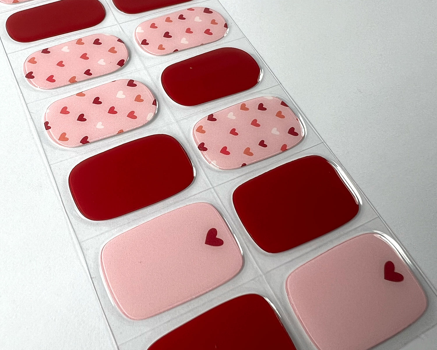 Celebrate love with Queen of Hearts, a romantic mix of soft pink bases, bold reds, and charming heart patterns. Perfect for a playful and elegant manicure!