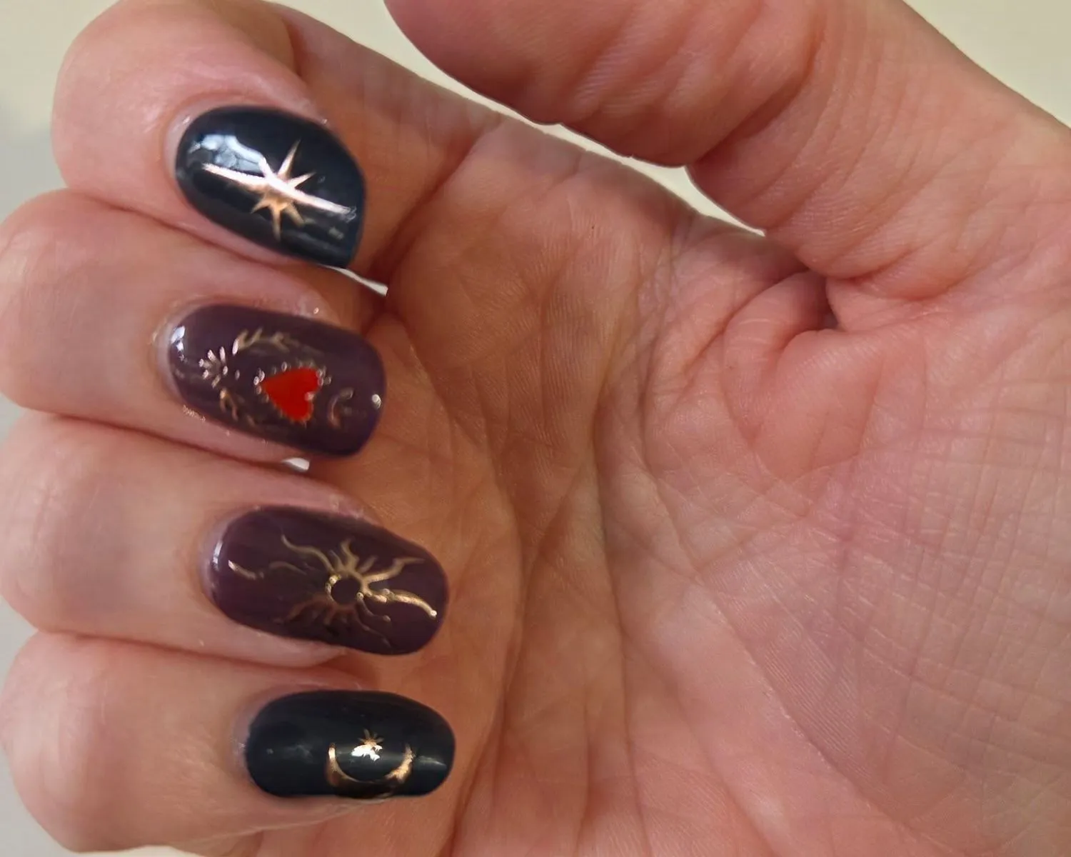 Romantic and timeless, our Romeo & Juliet Gold Nail Stickers feature bold red hearts paired with classic gold moons, stars, and celestial accents. Perfect for statement or Valentine’s Day nails, these stickers add warmth and drama when sealed with top coat over your favourite LA-BEK wraps.