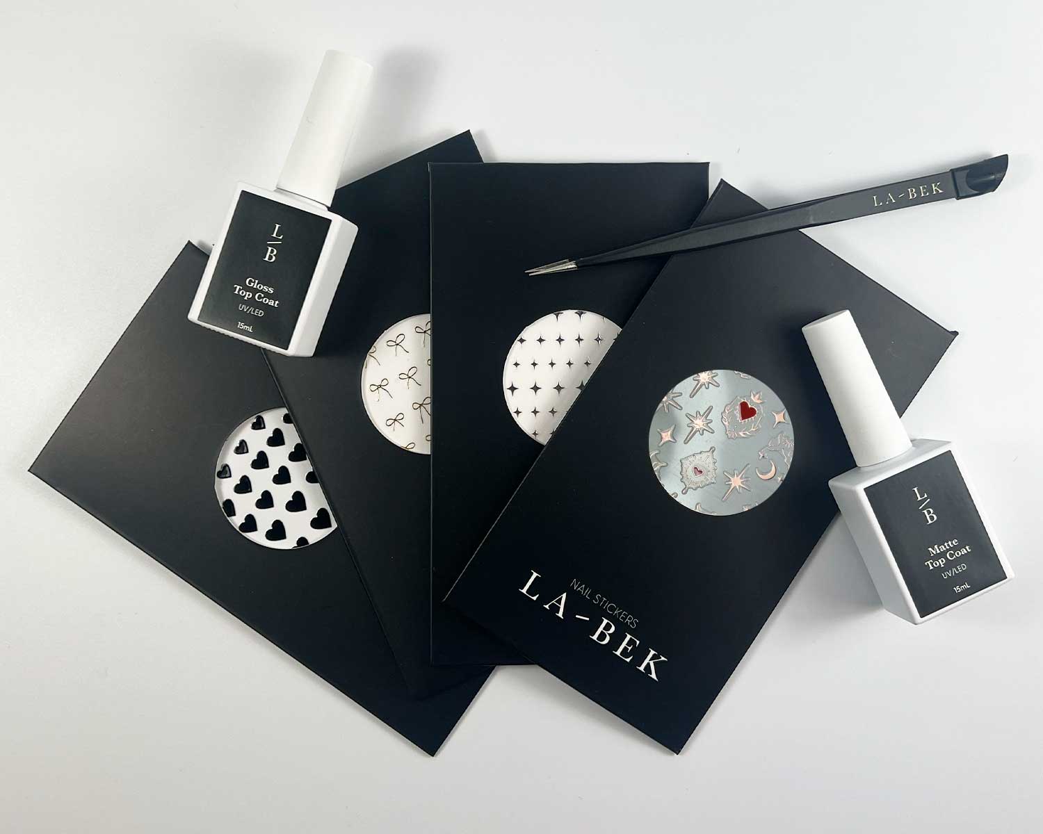 Each set of gel nail wraps from LA-BEK comes with: