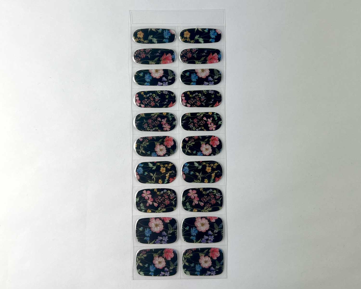 Let your nails bloom with Secret Garden, featuring a black base, vibrant floral designs, and glitter accents for a bold and enchanting look. Perfect for any occasion!