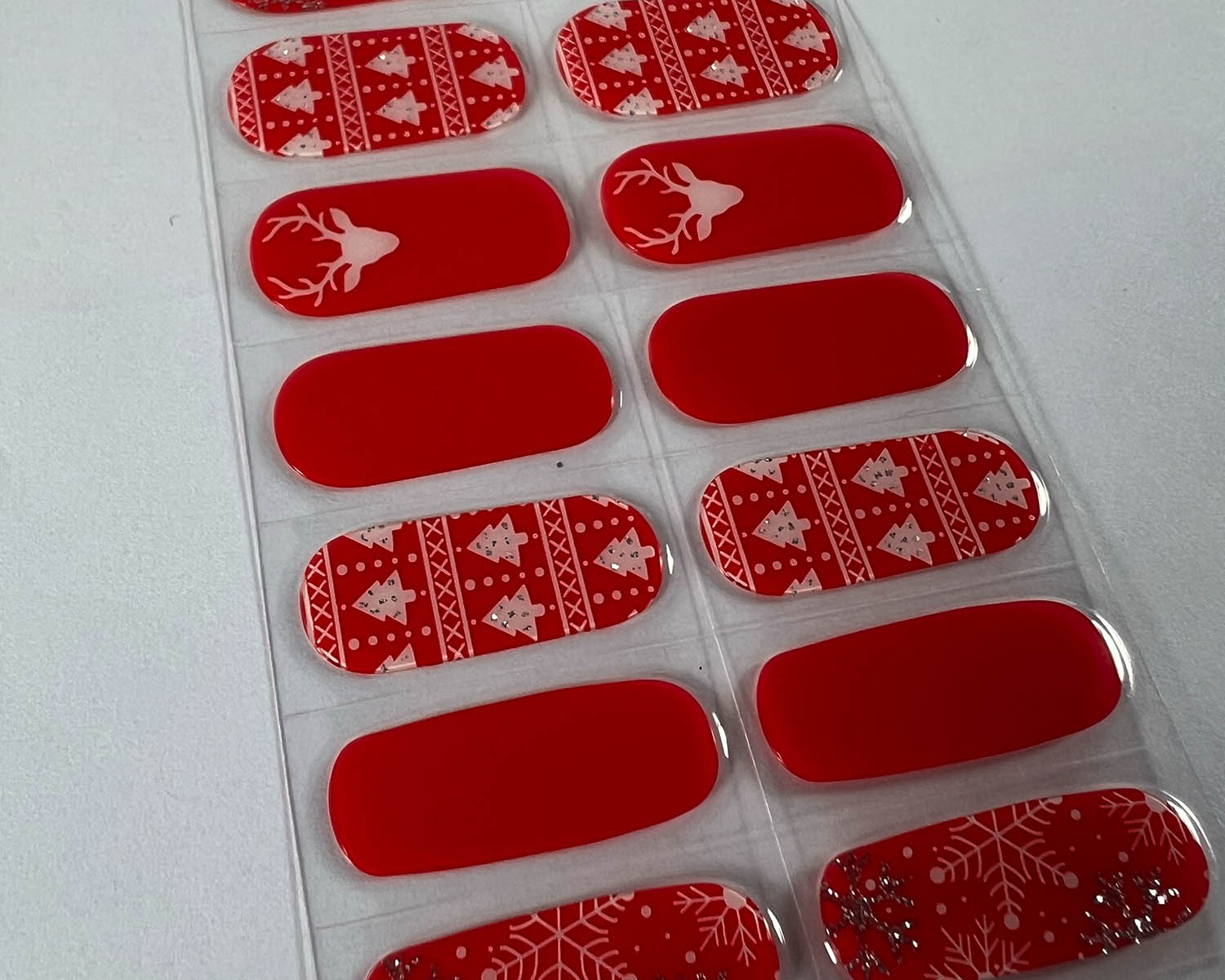 Celebrate the season with Sleigh Bells, a timeless holiday design that captures the magic of Christmas. Featuring a bold red base adorned with reindeer motifs, Christmas trees, and delicate snowflakes, this set brings the festive spirit to life.