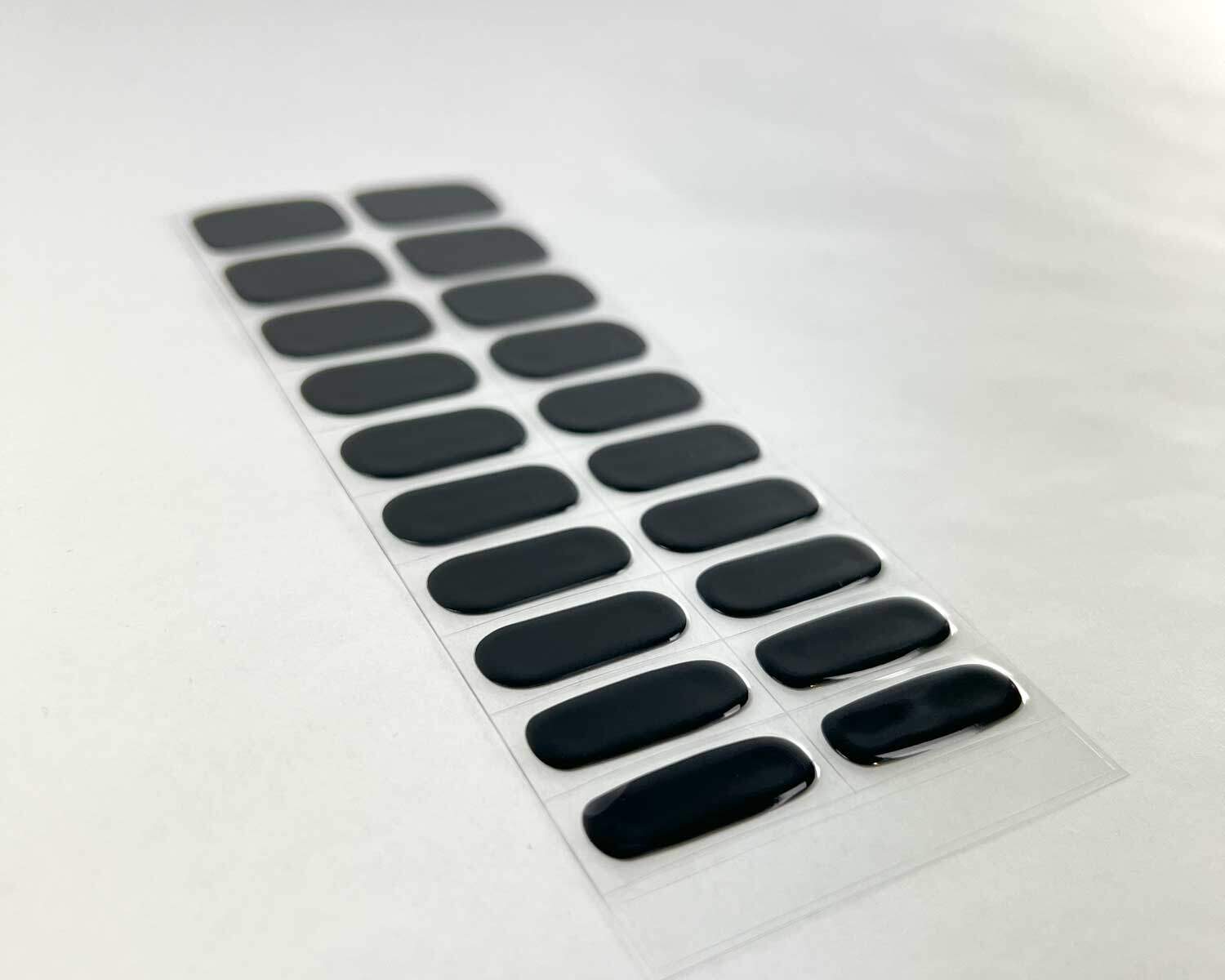 black Semi-cured gel nails feature an image showing 3 sizes snapshot on white background