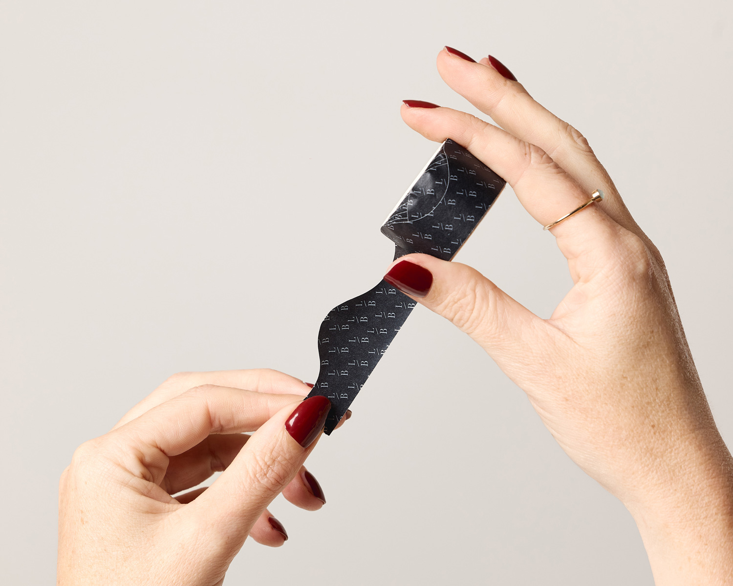 - Place the nail strip on your nail, gently stretching it for a perfect fit.